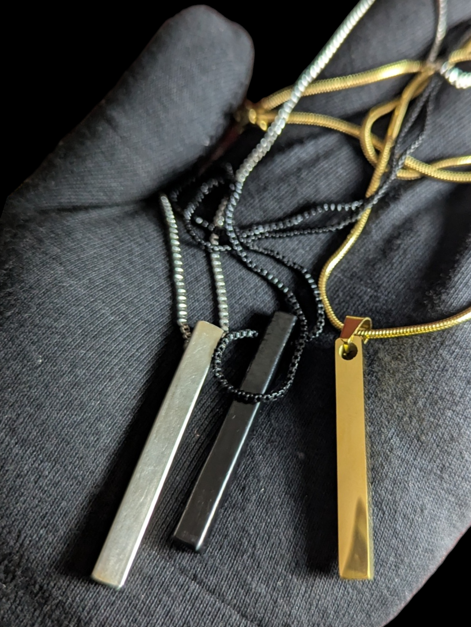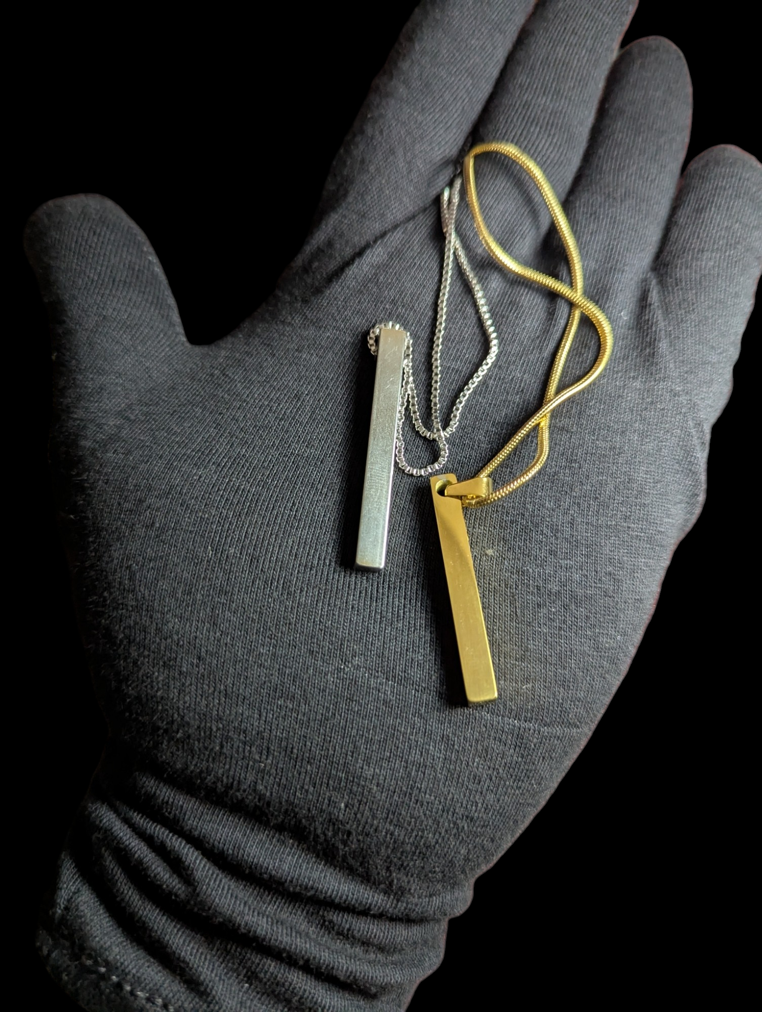 This unisex bar pendant is available in three elegant colors, offering versatile style options for any wardrobe. Its sleek, minimalist design makes it suitable for both casual and formal occasions, providing a subtle yet sophisticated accessory. Crafted to complement diverse tastes, this pendant enhances your look with a refined touch.