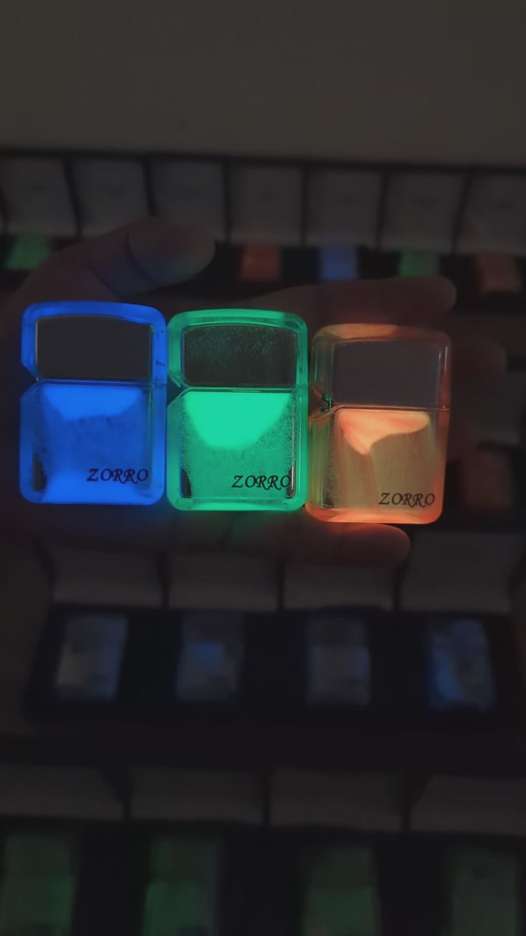 The Glow in Dark Zorro Lighter offers reliable ignition with a unique feature: it glows in the dark in four distinct colours—white, green, orange, and blue. This makes it easy to locate in low-light conditions, enhancing convenience and safety. Its durable design ensures consistent performance, making it an excellent choice for both everyday use and outdoor activities.