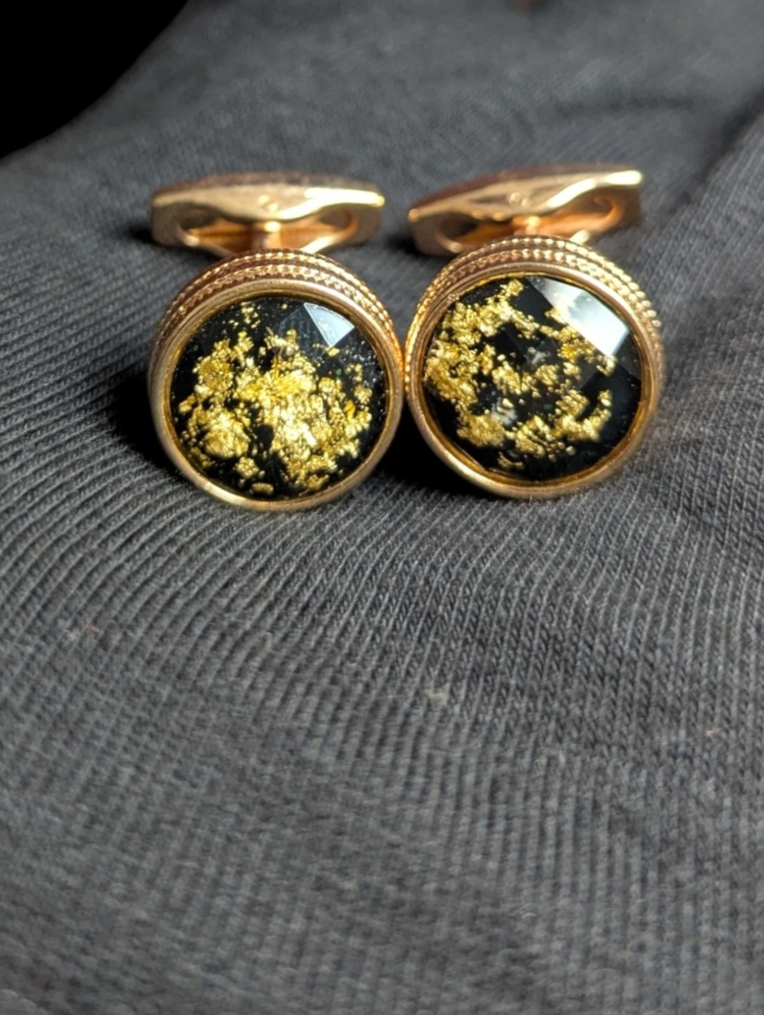 Elevate your formal attire with these Premium Black Galaxy Cufflinks, expertly crafted within a refined rose gold frame. The deep black galaxy design offers a sophisticated contrast, while the rose gold setting adds a touch of luxury and warmth. Perfect for professionals seeking a subtle yet distinguished accessory that complements any suit or dress shirt with timeless elegance.