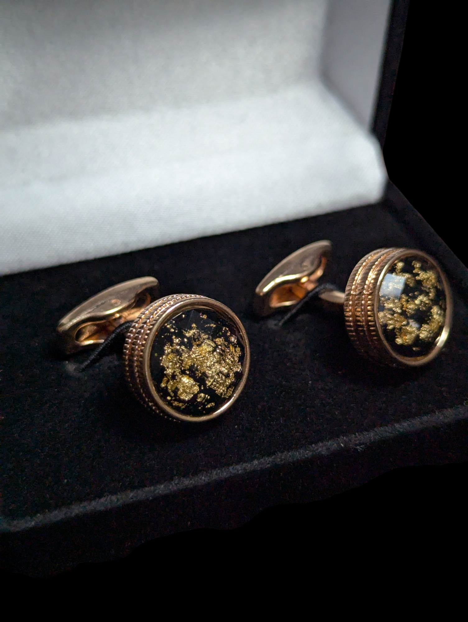 Premium Black Galaxy Cufflinks in Rose Gold Frame